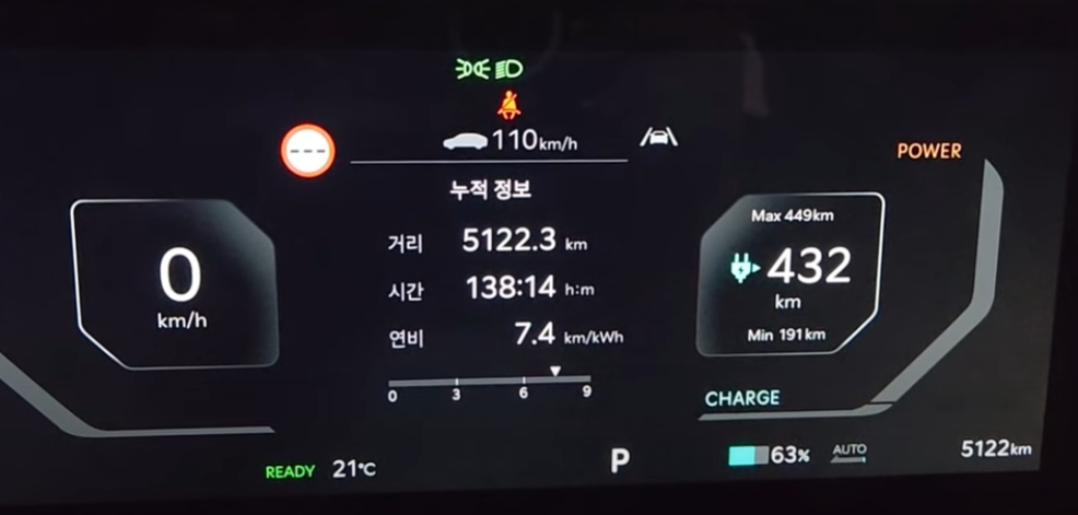 넉넉한 주행거리: 롱레인지 모델은 최대 501km를 주행할 수 있어, 장거리 운전 시 걱정이 덜해요.