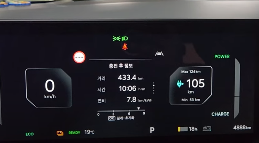 시승차는 풀옵션 사양으로 19인치 휠이 장착된 롱레인지 모델이었습니다. 차량을 처음 봤을 때, 전반적인 크기가 꽤 커 보였어요. 사실 크기를 보면 셀토스보다 살짝 작은 치수인데, 공간 효율이 정말 뛰어나서 그런지 실제로 더 작다는 느낌은 못 받았답니다. 그리고 이 작은 차에 다부진 느낌의 디자인이 정말 잘 어울리네요! 😍