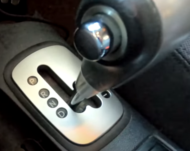 변속 레버를 D에서 수동 모드로 전환: D 위치에서 + 또는 -로 표시된 부분으로 레버를 이동시킵니다.